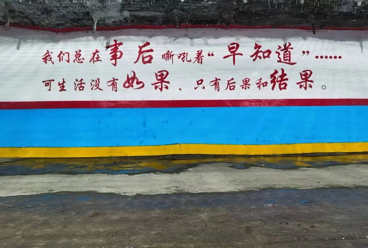 除了生动的漫画,长廊两侧的安全宣传标语更是字字千钧、直击人心。这些标语由通风队结合日常工作实际精心撰写,语言简洁有力、朗朗上口,既涵盖了“一通三防”工作的核心要求,也饱含着对职工生命安全的深切关怀。