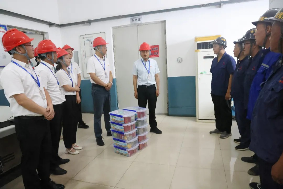 公司副总经理、工会主席钱进及工会全体一行深入煤矿生产运营公司机修厂和锅炉房,看望并慰问坚守在高温下工作的一线员工们,为他们送去防暑降温物资。亲切地与员工们交谈,了解他们的工作情况,感谢他们在高温下的坚守和付出,并叮嘱大家要注意防暑降温,保重身体。