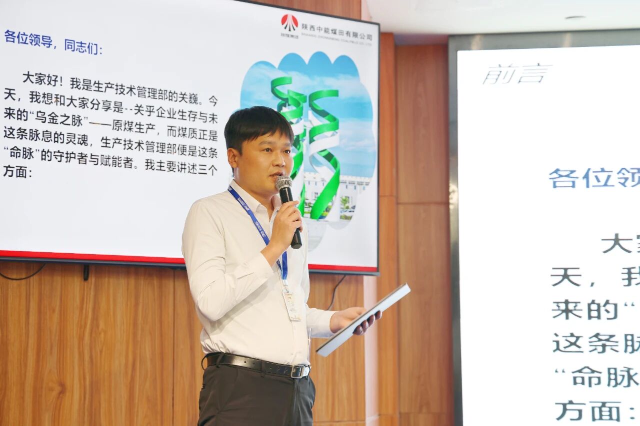 提问环节更将比赛推向高潮。公司领导现场抽题、精准发问,选手们沉着应答、逻辑清晰,既展现了扎实的业务功底,更彰显了中能人“以学促干”的实干风采。“煤似乌金,心洁如玉”“主动、精细、速度、到位”“中能好,大家好;中能事,大家干”……一句句掷地有声的应答,响彻赛场,彰显出中能人对企业文化的深刻理解与实践担当。