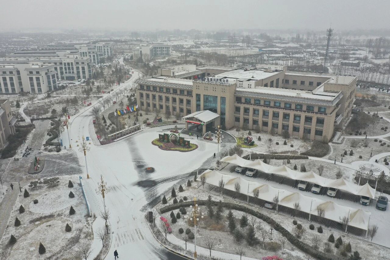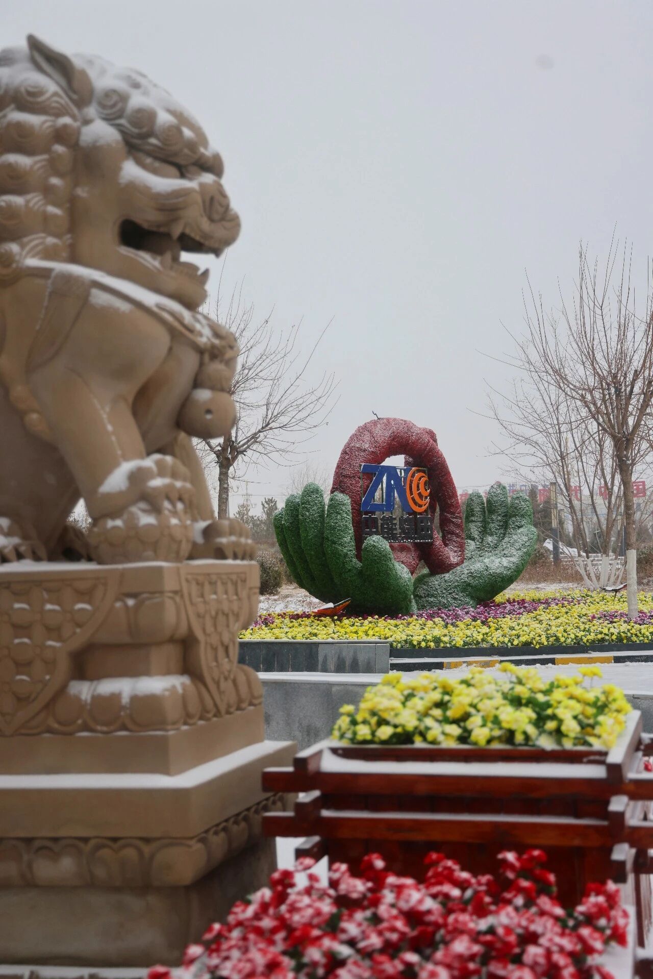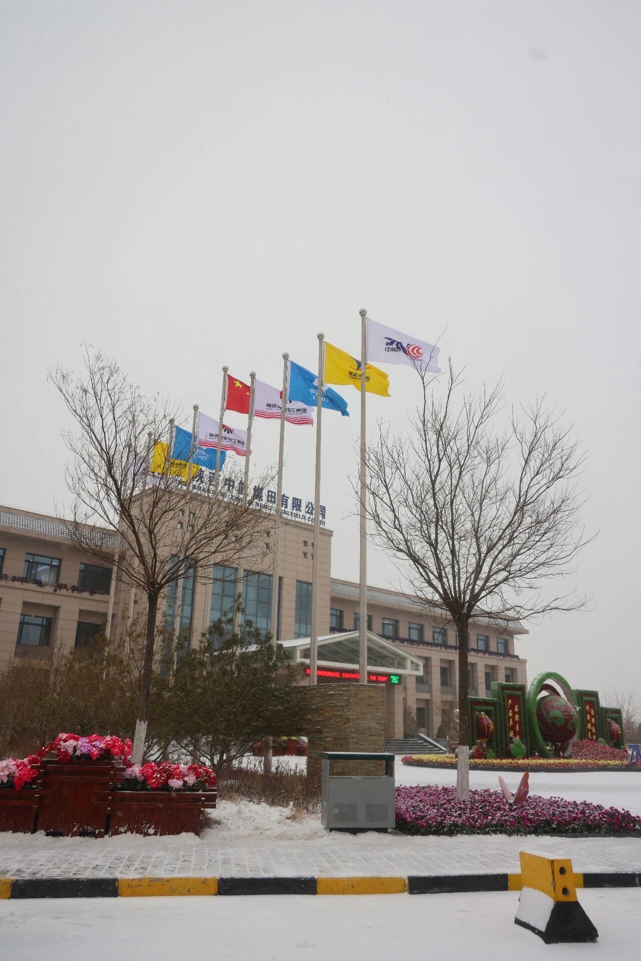 第一片雪花轻吻在矿区的土壤,为矿区披银毯。雪粒簌簌落,裹住全封闭储煤仓,如银龙卧雪。