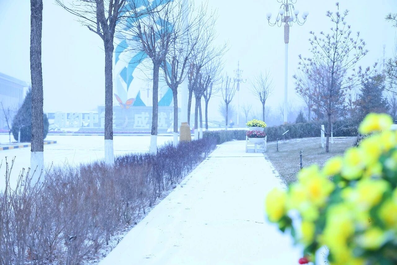 雪雾里,工业区的灯光与飞雪交织。初雪落满矿区,覆雪连绵,素净雅致。雪花轻盈飘洒,落遍矿区角落,每寸土地都浸着雪的纯净。灯光穿透雪幕,在雪上洒下暖光斑,绘出中能冬日绝美图景。(蔡海涛)